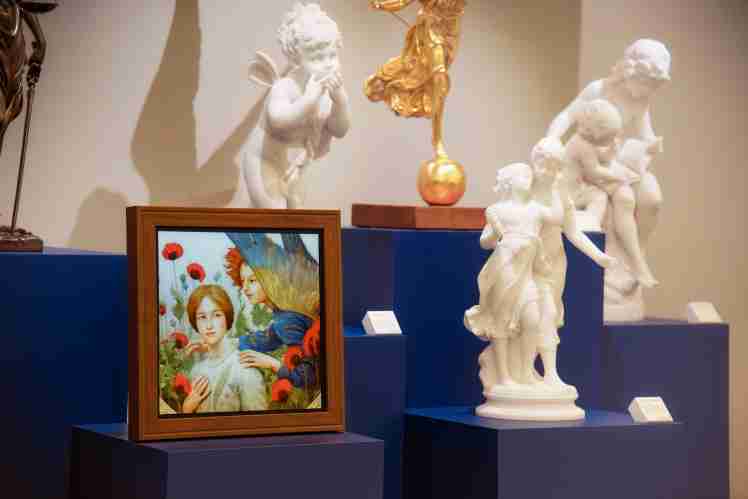森林舞会总部大厅 A.R.T. Gallery 展墙所摆设的 75寸、、32寸与 17寸方形规格的 A.R.T. 显示器,,展示了奇美博物馆19世纪天井名画〈音乐的寓意〉、、曾于 1881 年入围官方沙龙展且深受民众喜爱的〈丰收〉、、开创想象式象征主义画风的〈信息〉,,以及肖像名作〈小男孩与滑稽木偶〉等知名画作,,,重现经典名画风采。。。。画中人物的肢体动作,,天空云层的细腻色彩变化,,,在 A.R.T. 博物馆等级的色彩调校技术下,,「框」住每位拜访森林舞会总部的来宾,,,吸引访客沉浸其中,,,,驻足观赏。。。。而 A.R.T. 显示器的画作轮播功能,,,,也能充分释放空间效能,,,,近 30 幅的奇美经典作品在总部大厅的一隅轮播展示,,,达到「有限空间,,,无限体验」的收藏效果。。