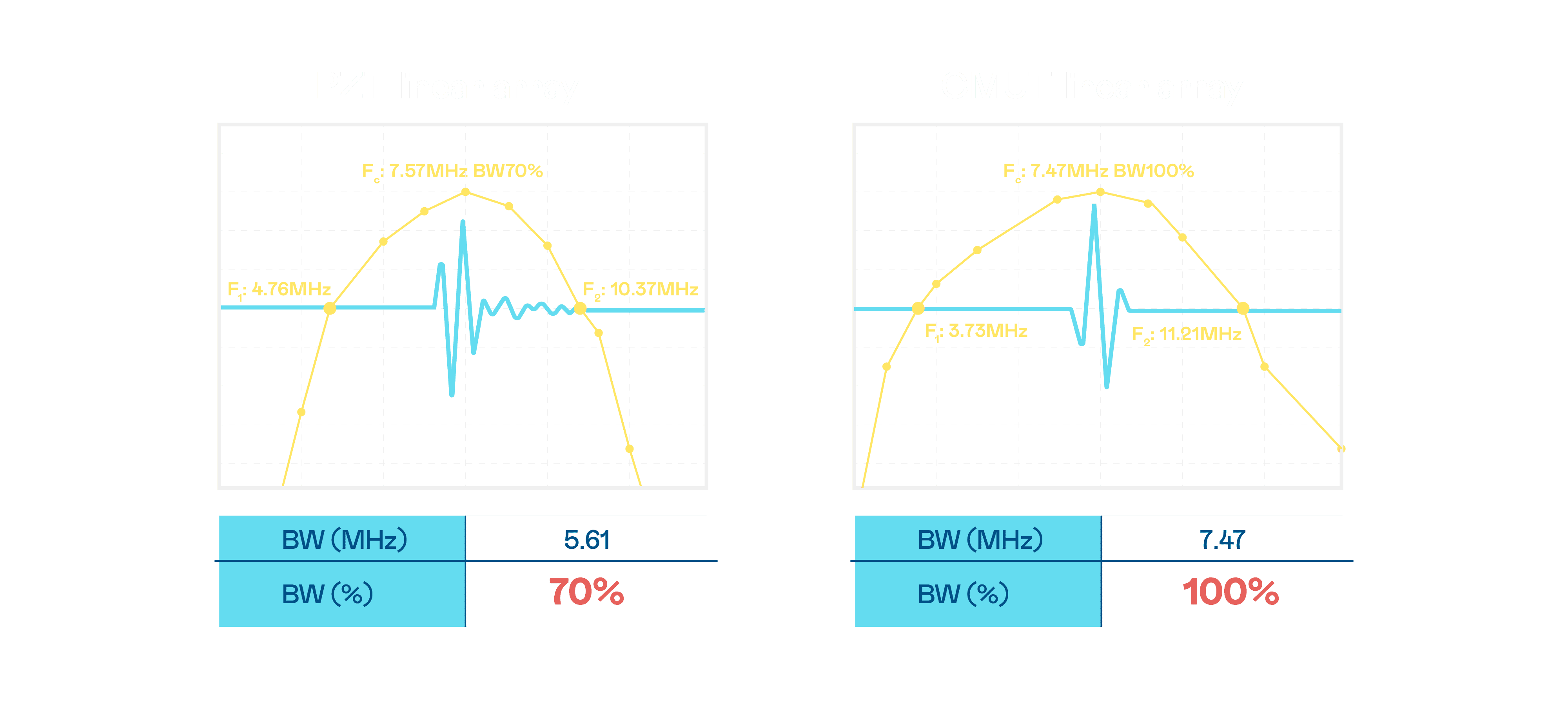 CMUT 技术是一种用电容式微机电元件来产生超音波讯号的技术。。。与传统 PZT 压电式技术相比,,CMUT 频宽增加 30%,,,,更宽频的超音波讯号让影像解析度大幅提升,,,是实现高影像品质医疗超音波扫描、、、促进精准医疗发展的关键技术。。。。